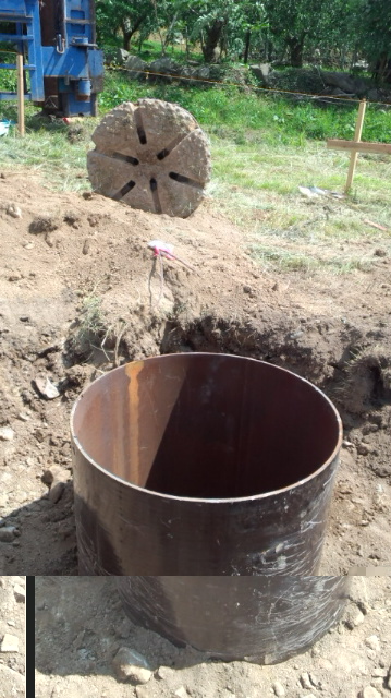 トラックの荷台に有る鋼管Ф800を中掘りダウンザで